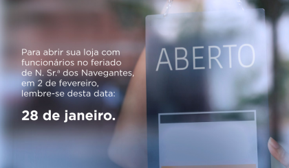 Noticias 8 de janeiro de 2016 Comércio pode abrir no feriado de Nossa Senhora dos Navegantes (02 de fevereiro) Veja mais