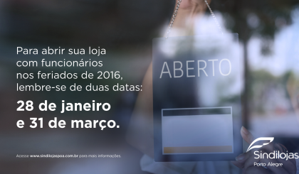 Noticias 8 de janeiro de 2016 Preencha até 31/03 a declaração de opção pelo trabalho em feriados para abrir... Veja mais